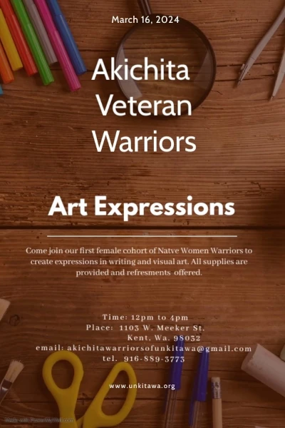 Come join our first female cohort of Native Warriors to create expressions in writing and visual art. All supplies are provided and refreshments offered.
